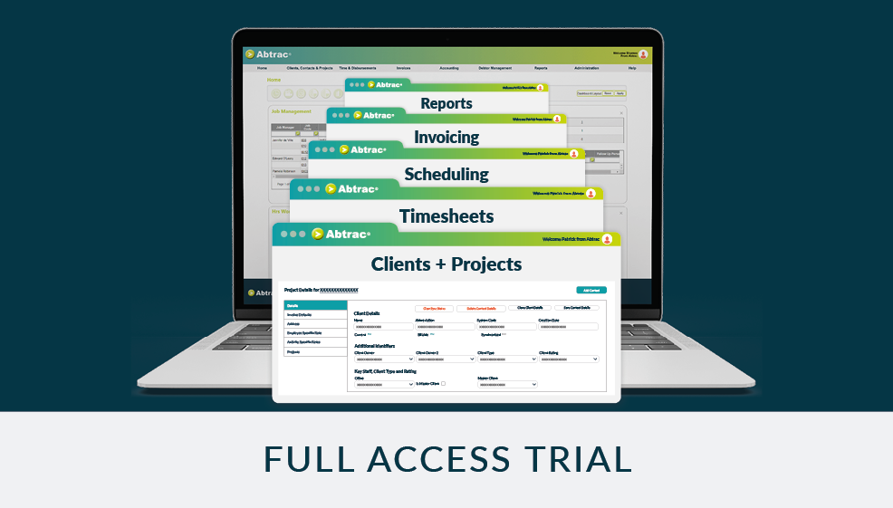 Watch the demo, explore a real client case study, download the guide, and start your free trial with full access to all features to see how Abtrac can improve billable time and visibility.